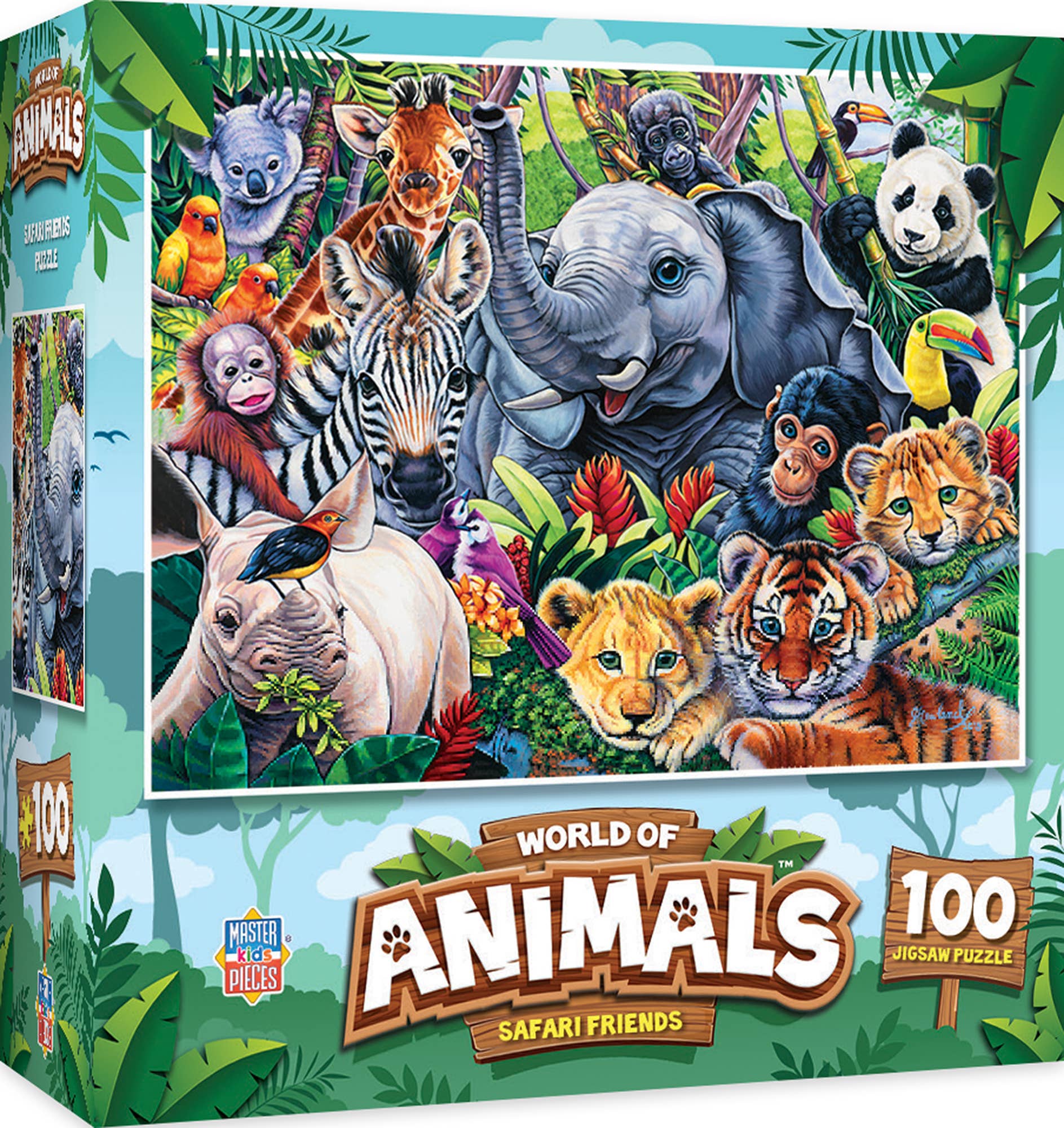 Your favorite Safari Friends come to life in this brightly painted World of Animals puzzle brought to you by MasterPieces. Get ready for a fun adventure …puzzling just got wild! This puzzle is 100 pieces and 15 inches x 11.5 inches in size and is a good challenge for ages 6+.