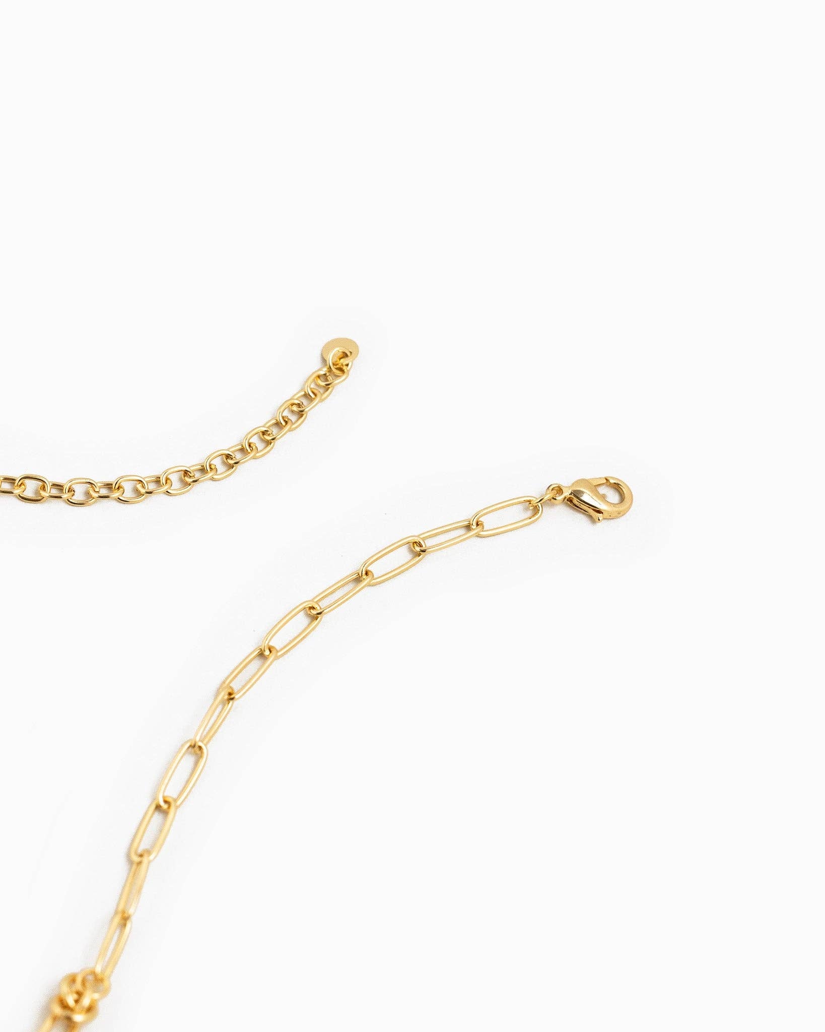 Add a playful twist to your jewelry box with this trendy necklace showcasing a distinctive knot link woven through the chain. Measuring 16" and crafted from brass, it’s the perfect piece to brighten up any outfit.
